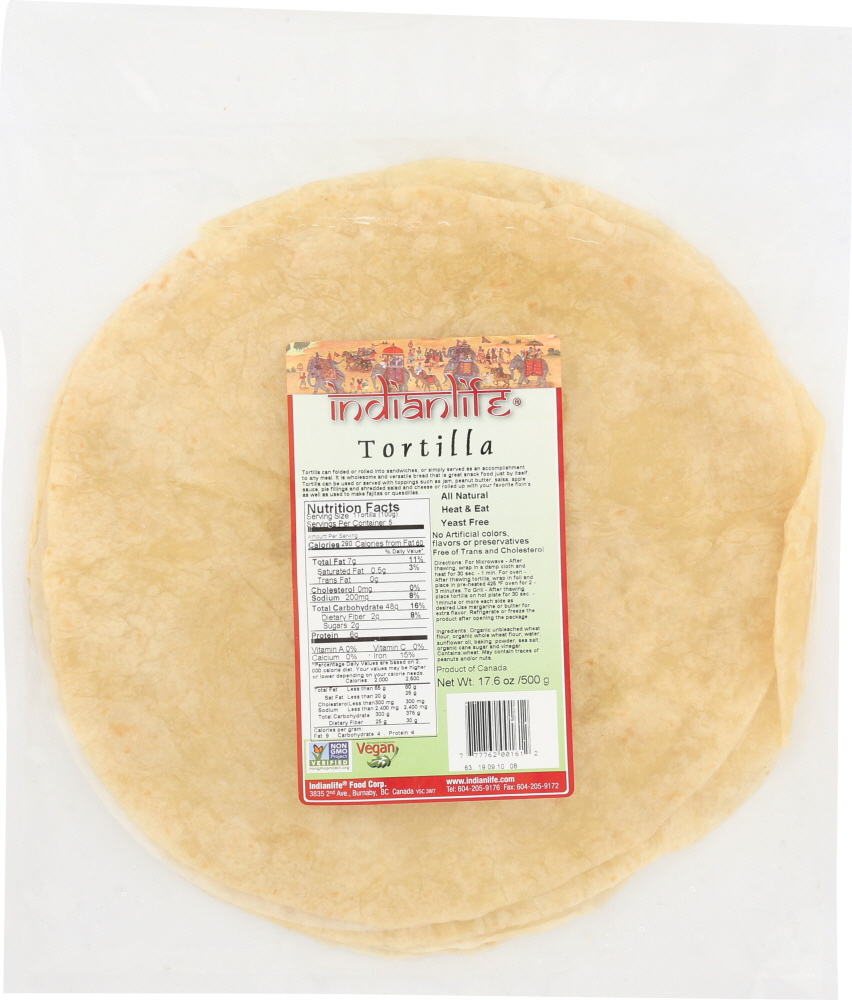 Plain Wraps made with Organic flour with no preservatives. Their large size makes it excellent for rolling and making fajitas. They are cholesterol and trans fat free and have no yeast as well.