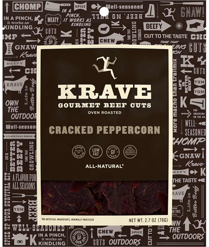 Meat Cracked Peppercorn Beef. It’s slight salty and totally tender, with a balance of pepper and subtle notes of onion and garlic. It’s What You KRAVE.