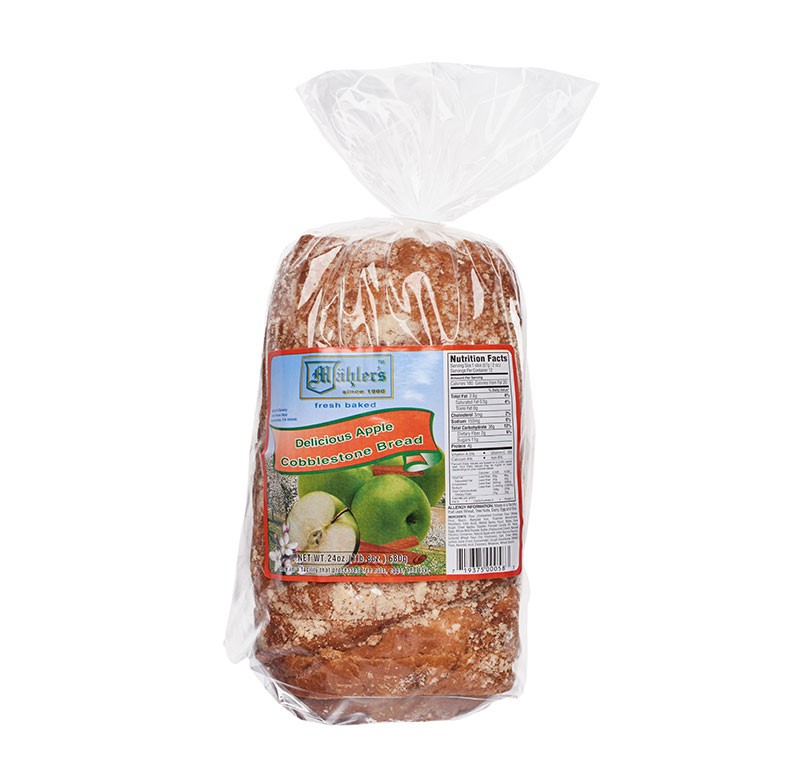 Delicious morning treat that is loaded with apples cinnamon and sugar and is sliced thick to satisfy that sweet tooth. Makes fantastic French Toast or toasted with cream cheese.