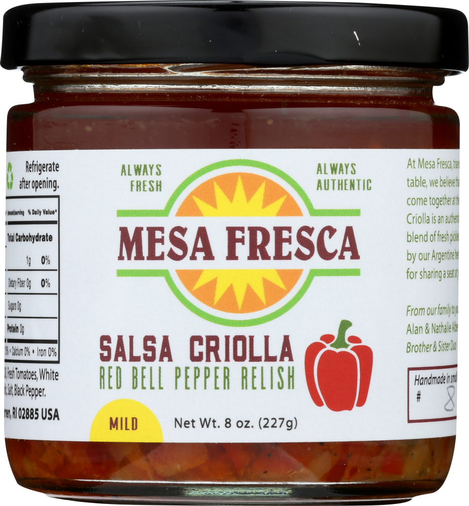 Our Salsa Criolla is an authentic Spanish Salsa, a blend of fresh pickled veggies inspired by our Argentine heritage.