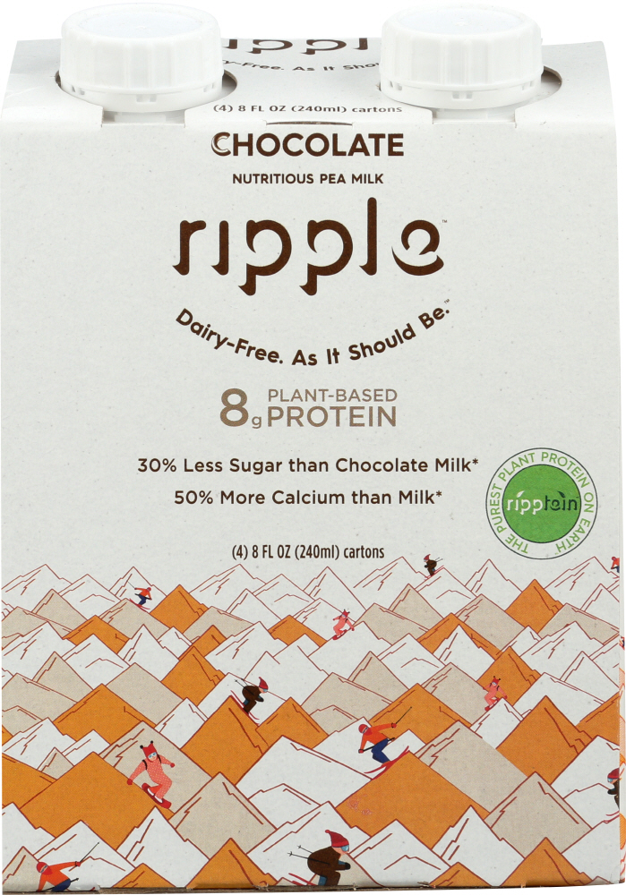 Kids need protein to thrive! What they don’t need is tons of sugar. Ripple Chocolate is deeply satisfying with rich cocoa-y goodness, but 8 grams of protein and 1/3 less sugar than chocolate milk.3 Ripple uses a patent-pending method to harvest clean protein from peas, so that we can make a rich, creamy, delicious non-dairy milk without so much sugar.4