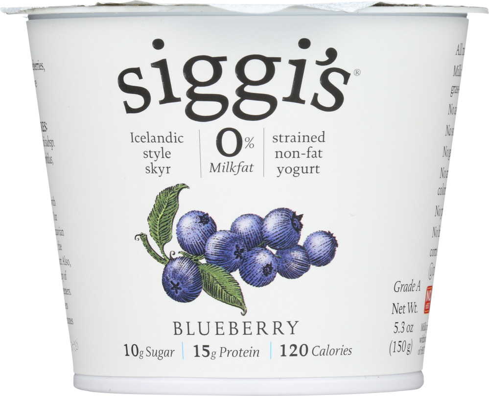 SIGGI’S: Icelandic Style Skyr Strained Non Fat Blueberry Yogurt, 5.3 oz
